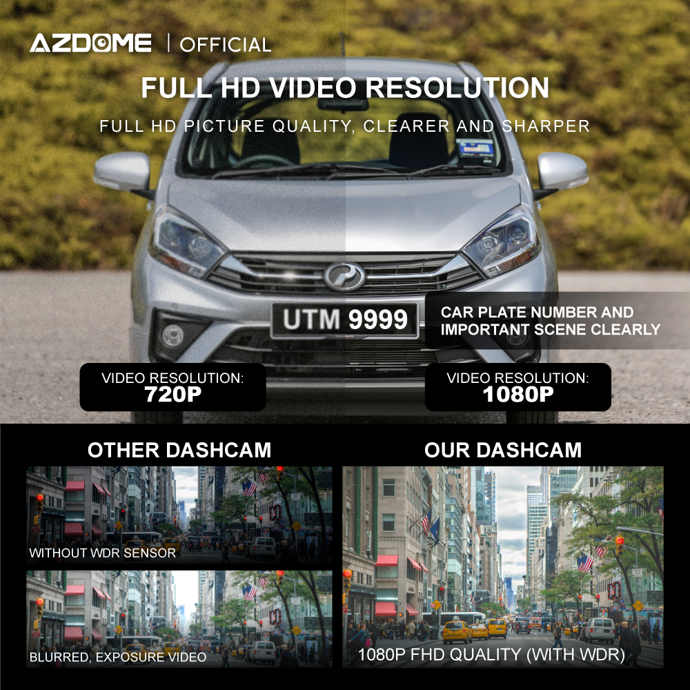 【Super Night Vision】The AZDOME M27S dash cam's front camera with advanced sensor automatically optimizes exposure in dark situations, allowing for clear shooting in low-light environments. The F1.8 large aperture ensures clear images at night. Car dash cams clearly display road details such as license plate numbers and road signs, making them a reliable guardian for your car day and night.