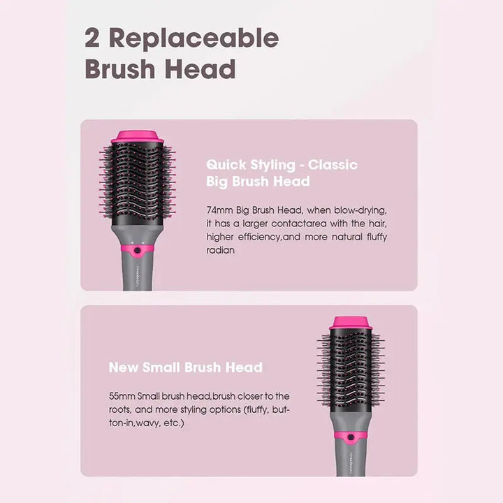 فرشاة هواء ساخن 4 في 1 بأيونات سالبة 1200 واط مع فرشاتين قابلتين للتبديل