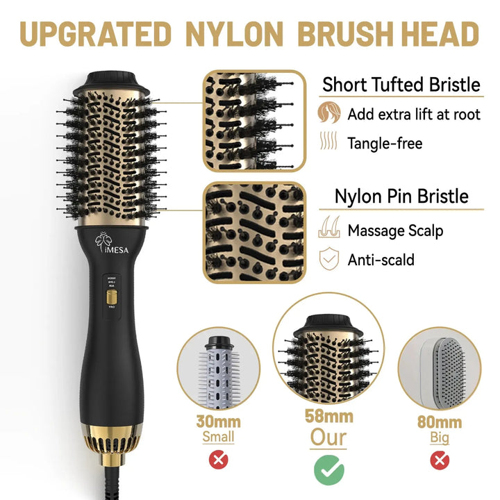فرشاة هواء ساخن ومعزز حجم 2.0 احترافية للفرد والتجعيد برأس قابل للفصل