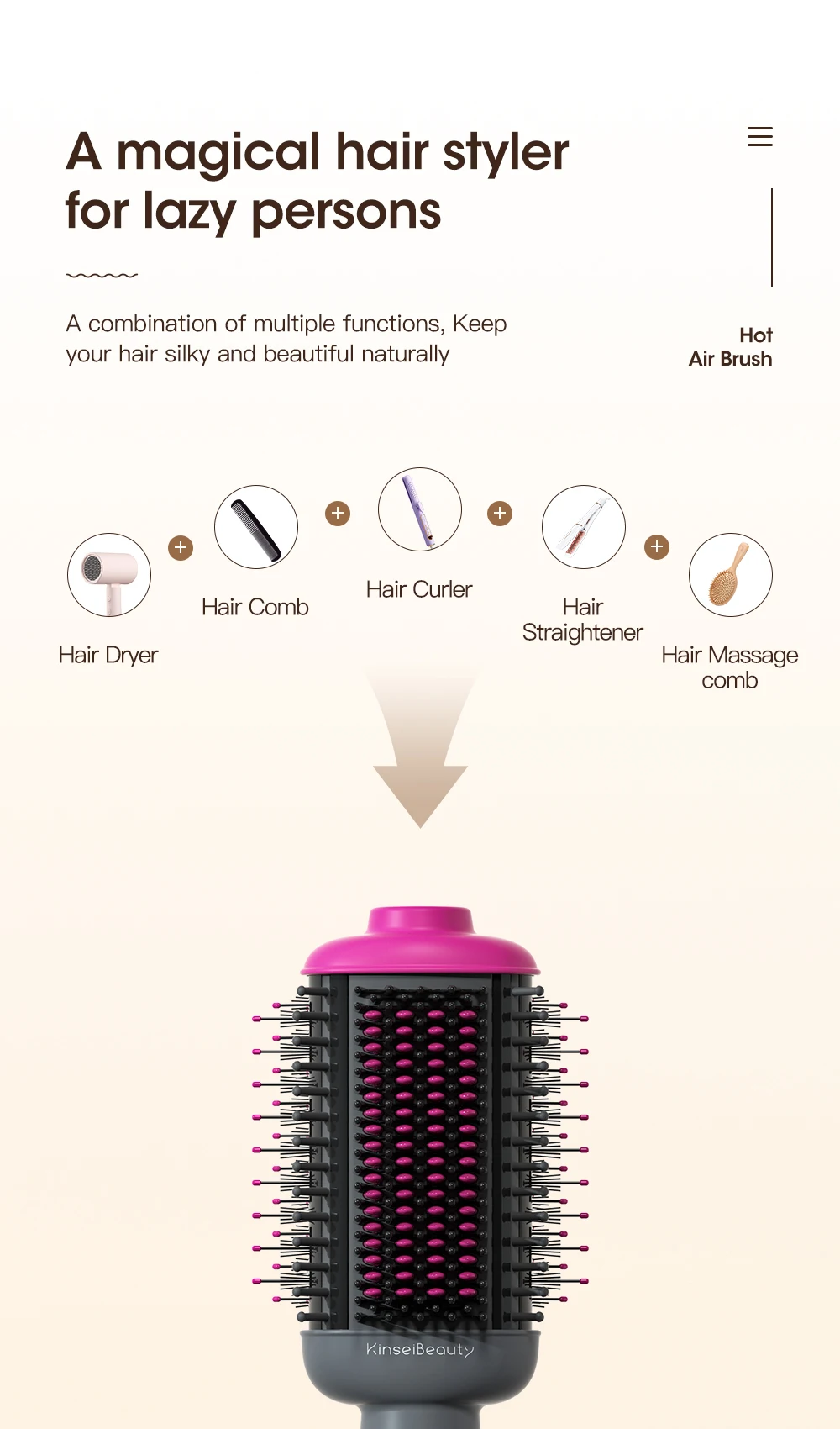 كينسي بيوتي فرشاة هواء ساخن مزدوجة الغرض لفرد الشعر سيراميك متعددة الوظائف